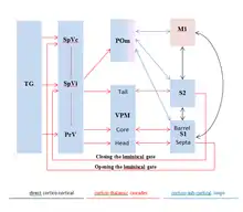 Figure 1B. System level description of the ascending pathways from whiskers to barrel cortex.