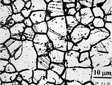 A stainless steel is said to be "sensitized" if chromium carbides are formed in the microstructure. A typical microstructure of a normalized type 304 stainless steel shows no signs of sensitization, while a heavily sensitized steel shows the presence of grain boundary precipitates. The dark lines in the sensitized microstructure are networks of chromium carbides formed along the grain boundaries.