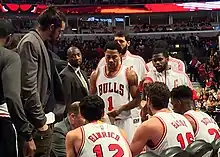 A preseason left orbital bone fracture saw Rose begin the regular season wearing a face mask.[105] On November 5, 2015, Rose scored a then season-high 29 points on 12-of-25 shooting in a 104–98 win over the Oklahoma City Thunder. He showed signs of his old MVP self as he scored 10 points over the final three and a half minutes to lift the Bulls after they blew a 10-point lead in the fourth quarter.[106] On December 18, he scored a season-high 34 points in a 147–144 quadruple overtime loss to the Detroit Pistons.[107] On February 5, 2016, he had a season-best game with 30 points, 9 rebounds and 8 assists in a 115–110 loss to the Denver Nuggets.[108]