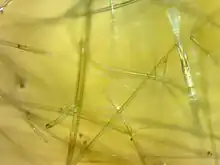Polycrystalline wool consists of fibers that contain aluminum oxide (Al2O3) at greater than 70 percent of the total materials and is produced by sol–gel method from aqueous spinning solutions. The water-soluble green fibers obtained as a precursor are crystallized by means of heat treatment.[7] Polycrystalline wool is generally used at application temperatures greater than 1300 °C and in critical chemical and physical application conditions.