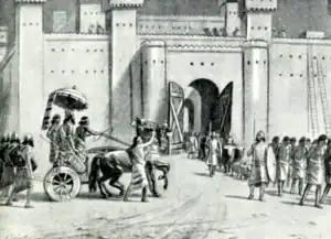 20th-century illustration of Tiglath-Pileser III's capture of Damascus
