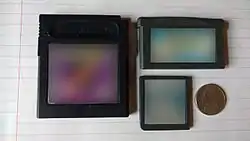 Nintendo DS games use a proprietary solid state mask ROM in their game cards.[77] The mask ROM chips are manufactured by Macronix and have an access time of 150 ns.[78] Cards range from 8–512 MiB (64 Mib to 4 Gib) in size (although data on the maximum capacity has not been released).[79][80] Larger cards have a 25% slower data transfer rate than more common smaller cards.[81] The cards usually have a small amount of flash memory or an EEPROM to save user data such as game progress or high scores. The game cards are 35 mm × 33 mm × 3.8 mm (1.38 in × 1.30 in × 0.15 in) (about half the width and depth of Game Boy Advance cartridges) and weigh around 3.5 g (1⁄8 oz).