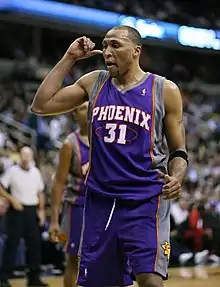 During the 2012 free agency period, the Suns traded Steve Nash to the Los Angeles Lakers in exchange for first-round picks in 2013 and 2015, as well as second-round picks in 2013 and 2014. After the trade, the Suns then re-acquired point guard Goran Dragić from Houston, signed Minnesota Timberwolves forward Michael Beasley, and claimed Houston forward Luis Scola off amnesty waivers while also using the same amnesty clause (as codified in the 2011 collective bargaining agreement) to waive Josh Childress. They also did a three-way trade with the New Orleans Hornets and the Timberwolves by trading Robin Lopez and Hakim Warrick to the Hornets and a 2014 second-rounder to the Timberwolves in exchange for Wesley Johnson, a top 14-protected future first-rounder and the rights to Brad Miller and Jerome Dyson. The latter two players' rights were later waived and the Suns then signed Jermaine O'Neal for one year. The Suns also signed P. J. Tucker based on his performance with the Suns' Summer League team. On September 20, it was announced that Channing Frye had dilated cardiomyopathy and as a result, he missed the entire 2012–13 season, although he sometimes made special appearances to do the pre-game show for local Suns games with Tom Leander and Tom Chambers. On January 12, 2013, the Suns became the fourth-fastest NBA team to win 2,000 games with a 97–81 road victory against the Chicago Bulls, which also marked the last victory for Alvin Gentry as head coach for the Suns. On January 18, 2013, the day after a loss that broke a 24-home-game winning streak against the Milwaukee Bucks, Gentry agreed to leave the Phoenix Suns organization.[45] Two days later, player development coach Lindsey Hunter was named interim head coach role for the remainder of the season. A few days later, assistant head coaches Dan Majerle and Elston Turner had also resigned from their positions. On February 21, 2013, the Suns had traded their 2013 second-round pick to the Houston Rockets in exchange for Marcus Morris, the twin brother of power forward Markieff Morris.[46] A day later, the Suns traded point guard Sebastian Telfair to the Toronto Raptors in exchange for Iranian center Hamed Haddadi and a 2014 second-round pick. The Suns ended their first post-Steve Nash season with a 25–57 win–loss record, their second-worst record in franchise history behind only their inaugural season.