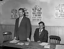 In 1943 Saunders Lewis contested the University of Wales parliamentary seat at a by-election, gaining 1,330 votes, or 22%. In the 1945 general election, with party membership at around 2,500, Plaid Cymru contested seven seats, as many as it had in the preceding 20 years, including constituencies in south Wales for the first time. At this time Gwynfor Evans was elected president.[53]