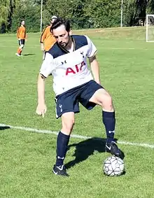 He played for Chertsey Town during the 2007–08 season and on 8 July 2008 signed for North West Counties League side Stone Dominoes.[33] He has also played celebrity football matches for charity on a few occasions[34][35] and played with members of Hollywood United while in the district for acting career purposes. He also plays for the Arsenal Ex-Pro and Celebrity XI.[36] On 6 June 2010, he participated in a Soccer Aid game for England on the left wing.