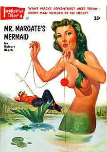 During the 1930s, Bloch was an avid reader of the pulp magazine Weird Tales, which he had discovered at the age of ten in 1927. In the Chicago Northwestern Railroad depot with his parents and aunt Lil, his aunt offered to buy him any magazine he wanted and he picked Weird Tales (Aug 1927 issue) off the newsstand over her shocked protest.[7][8][9] He began his readings of the magazine with the first instalment of Otis Adelbert Kline's "The Bride of Osiris" which dealt with a secret Egyptian city called Karneter located beneath Bloch's birth city of Chicago.[10] The Depression came in the early 1930s. He later recalled, in accepting the Lifetime Achievement Award at the First World Fantasy Convention (1975), how "times were very hard. Weird Tales cost twenty-five cents in a day when most pulp magazines cost a dime. I remember that meant a lot to me." He went on to relate how he would get up very early on the last day of the month, with twenty-five cents saved from his monthly allowance of one dollar, and would run all the way to a combination tobacco/magazine store and buy the new Weird Tales issue, sometimes smuggling it home under his coat if the cover was particularly risqué.[11] His parents were not impressed with Hugh Doak Rankin's sexy covers for the magazine, and when the Bloch family moved to Milwaukee in 1928 young Bloch gradually abandoned his interest. But by the time he had entered high school, he returned to reading Weird Tales during convalescence from flu.[7]