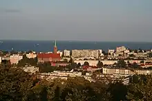 Since early 13th century the area now forming the parish was part of Archangel Michael parish, based in the village of Oxhöft/Oksywie.[1] In 1926 the largely uninhabited neighbourhood was incorporated into the newly established Holy Mary Queen of Poland parish, centred on the new church located in the very heart of what at that time was a fishing village rapidly turning into a modern city of Gdynia.[2] First residential quarters were constructed on what was then known as Marshal Foch Hill in the 1930s,[3] but the area underwent massive development in the 1940s, first during the German rule and especially in the first post-war years. The Franciscans applied to ecclesiastical authorities requesting setting up of a new parish;[4] as since 1921 Gdynia formed part of the Culm Bishopry,[5] in December 1948 the Culm bishop Kazimierz Kowalski carved out the district from the Holy Mary parish and set up the new one of St Anthony,[6] territorially roughly corresponding to the currently existing municipal districts of Wzgórze św. Maksymiliana and Redłowo. Its population remained unclear and probably stood at around 5,000,[7] most of them young people freshly migrated from other locations in Pomerania and elsewhere.