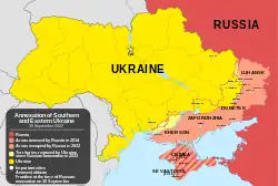 The Wagner Group first appeared in 2014, during the Russian annexation of Crimea.[85] Until 2022 it was unclear who founded and led the group. Both Dmitry Utkin and Yevgeny Prigozhin have been named as its founders and leaders. During the Russian invasion of Ukraine, Prigozhin claimed to have founded Wagner and he was referred to as the group's head.[79] Some sources say Prigozhin was its owner and financier while Utkin was its military commander.[86]
