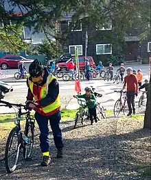A bike bus (or bicycle train) is the same concept, but with all participants travelling by bicycle instead of on foot.[34]